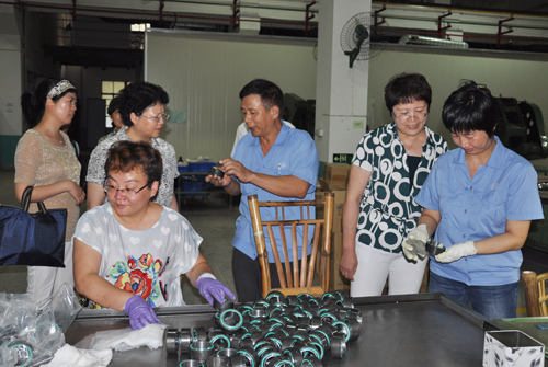 2015年8月5日下午,中華全國總工會女職工委員會常委周樂紅、倪燕芳帶領(lǐng)全國總工會“單獨兩孩”政策專題調(diào)研組在省總工會、市總工會相關(guān)領(lǐng)導陪同下到公司調(diào)研。在公司工會主席張?zhí)┥?、常?wù)副主席洪麗玲陪同下,調(diào)研組先深入車間一線生產(chǎn)現(xiàn)場走訪參觀,實地了解一線女職工工作環(huán)境與狀況,并同女職工親切交談,了解女職工勞動保護、特殊權(quán)益保護等相關(guān)問題。