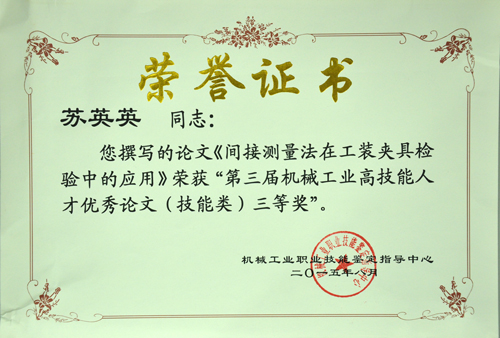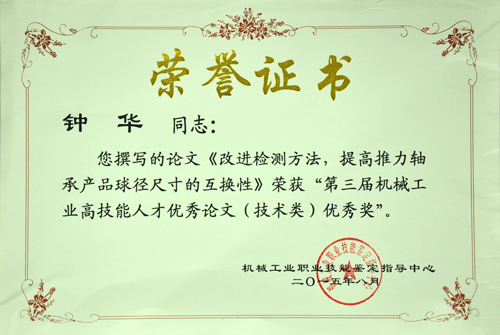 近日,第三屆機械工業(yè)高技能人才優(yōu)秀論文評選工作圓滿結(jié)束。此次評選由機械工業(yè)職業(yè)技能鑒定指導中心主辦,行業(yè)協(xié)會、企業(yè)專家組成的評審專家委員會對140余篇論文進行了專業(yè)評審。公司員工蘇英英撰寫的《間接測量法在工裝夾具檢驗中的應(yīng)用》獲得技能類論文三等獎,鐘華撰寫的《改進檢查方法,提高推力軸承產(chǎn)品球徑尺寸的互換性》獲得技術(shù)類論文優(yōu)秀獎。此外,公司技能鑒定站站長洪麗玲也榮獲機械工業(yè)高技能人才培養(yǎng)優(yōu)秀組織者。