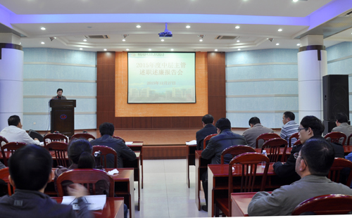 2015年12月27日,公司在俱樂部會議室召開 2015 年度中層主管述職述廉報告會。黨委副書記張?zhí)┥鞒謺h,公司高管及全體中層主管參加了會議。會上46名中層主管分別代表部門、車間以 PPT 形式作述職述廉報告。