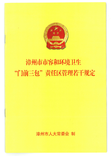 ????《漳州市市容和環境衛生“門前三包”責任區管理若干規定》已于2017年4月26日經漳州市第十六屆人民代表大會常務委員會第二次會議通過,于2017年5月25日經福建省第十二屆人民代表大會常務委員會第二十九次會議批準,現予公布。本規定自2017年9月1日起施行。