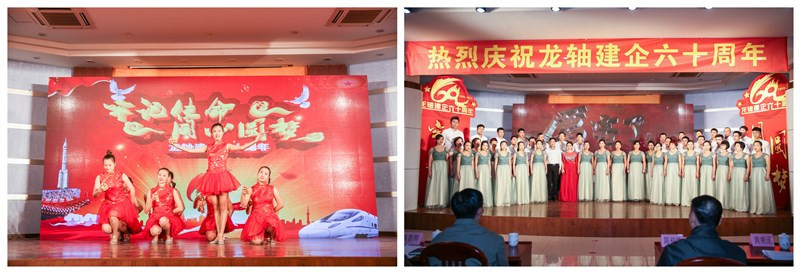 隨后,到場人員觀看建企60周年紀錄片,共同重溫龍軸走過的60年不平凡歲月;快板表演《牢記使命 同心圓夢》以朗朗上口的語言、歡快的節奏點燃了龍軸60華誕的喜慶氛圍;員工大合唱《不忘初心》、《唱響明天》把慶祝大會的氣氛推向高潮。