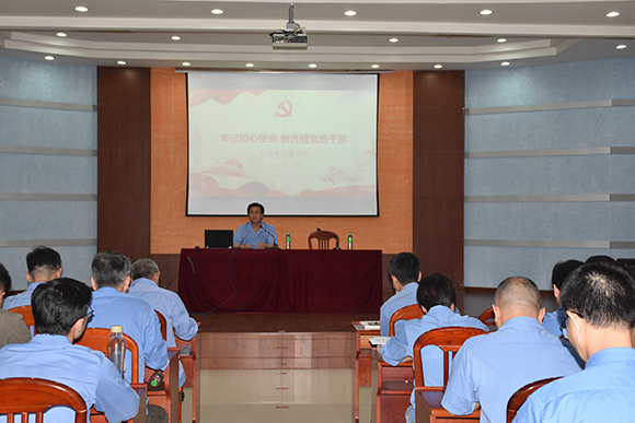 ????2019年11月8日下午,公司黨委副書記康安偉在公司俱樂部講授《牢記初心使命 做合格黨員干部》專題黨課,其所在支部及掛鉤部門/車間黨員聆聽學習。康安偉指出,要通過主題教育讓我們回到當初出發的起點,回歸黨章黨規的基本要求,時刻不忘黨員的宗旨義務,不忘入黨時許下的錚錚誓言,做一名具有鐵一般信仰、鐵一般信念、鐵一般紀律、鐵一般擔當的合格共產黨員。他結合公司實際及近期調研成果,主要圍繞“牢記初心使命,不忘黨員第一身份;對照黨章黨規,聯系實際找不足;踐行黨員干部責任,加強黨的建設;感悟初心使命,做合格黨員干部”等內容開展講述。