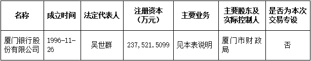 (二) 廈門銀行股份有限公司為非上市金融機(jī)構(gòu),其基本信息如下: