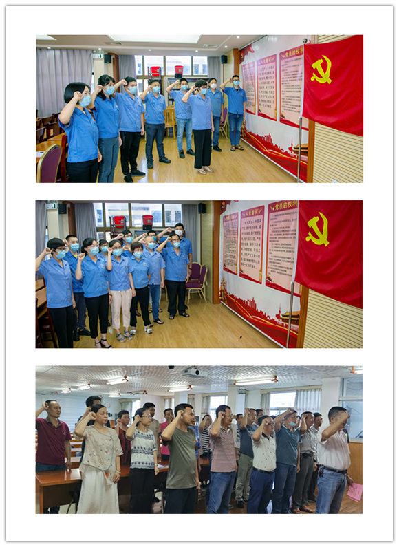 2020年7月1日,公司黨委組織7名新黨員進行入黨宣誓,同時紅旗黨總支、黨建人事部黨支部等基層黨組織開展了重溫入黨誓詞活動。