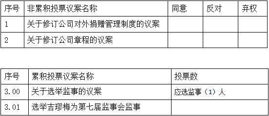 (六)采用累積投票制選舉董事、獨(dú)立董事和監(jiān)事的投票方式,詳見附件2