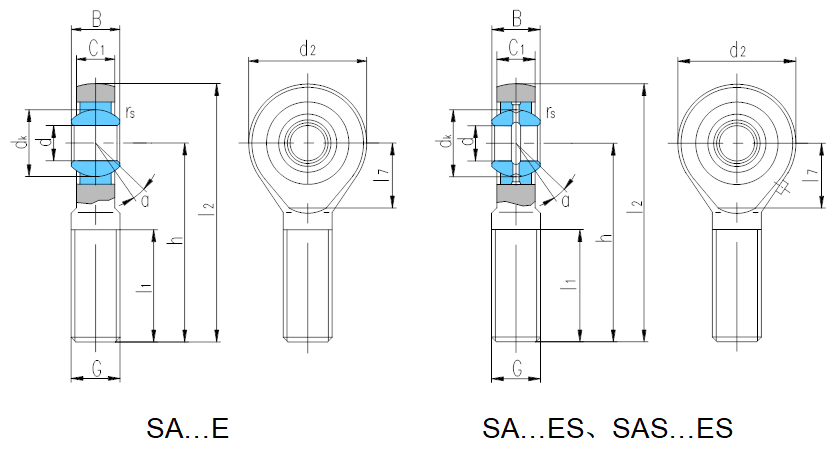 產品特點:組裝桿端關節軸承由桿端體和向心關節軸承GE…E或GE…ES組裝而成,桿端體材料是碳鋼,表面鍍鋅;除型號后置代號為E外,其余型號可通過油杯或桿端眼孔潤滑。