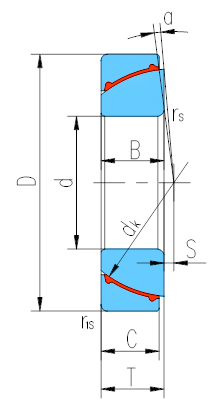 產品特點:外圈材料為軸承鋼,淬火,球面襯有PTFE塑料,內圈材料為軸承鋼,淬火,球面鍍硬鉻。