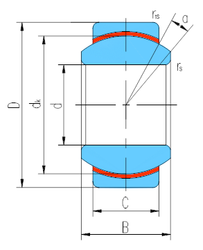 產(chǎn)品特點:內(nèi)、外圈材料均為軸承鋼,淬火,球面襯有PTFE塑料,內(nèi)圈球面鍍硬鉻。