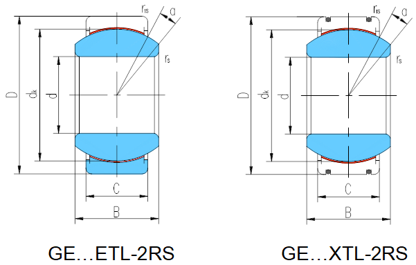 可提供密封圈為“2GS”和不帶密封圈的向心關(guān)節(jié)軸承。