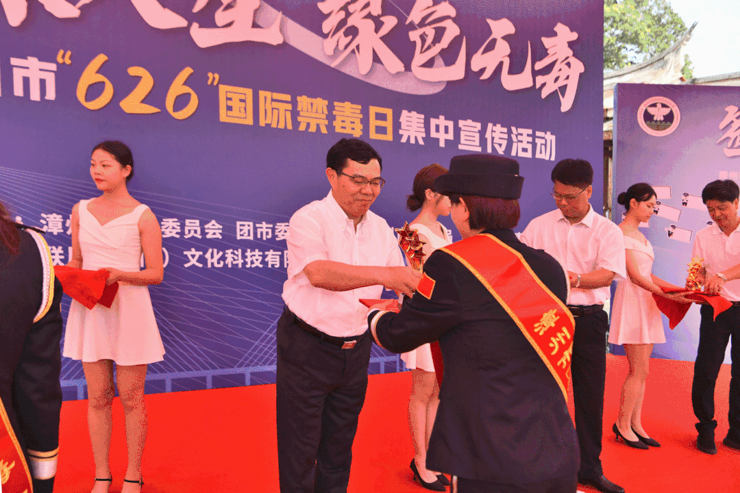 此次宣傳活動緊扣“健康人生、綠色無毒”主題,舉行漳州市首屆“最美禁毒人”頒獎儀式、簽名寄語儀式、禁毒IP形象“漳小禁”亮相發布,運用群眾喜聞樂見的形式,營造全民禁毒的濃厚氛圍。