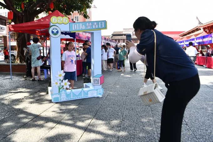 拍照打卡區現場設立具有禁毒元素的立體拍照打卡框,吸引了不少群眾發揮創意、拍照打卡。
