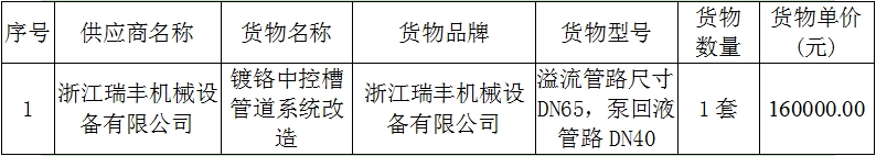 二、項目名稱:鍍鉻中控槽管道系統改造采購與安裝