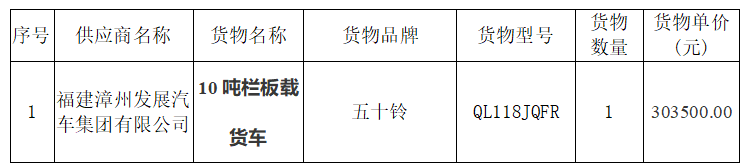 龍軸集團10噸欄板載貨車采購中標公告
