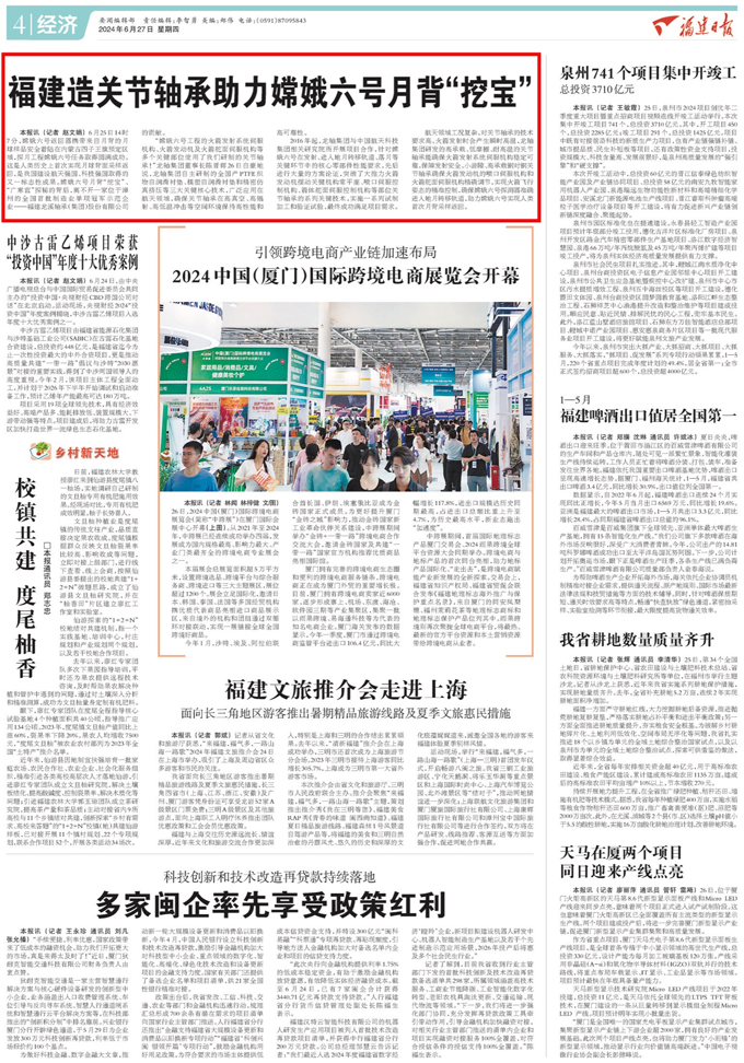公司高端關節軸承成功應用于探月工程嫦娥六號的火箭發射系統伺服機構、火箭發動機及火箭舵面伺服機構等多個關鍵部位,助力嫦娥六號任務取得圓滿成功。2024年6月27日,《福建日報》刊登《福建造關節軸承助力嫦娥六號月背“挖寶”》,講述公司以深厚的家國情懷和高度的政治擔當,多年來傾力服務國家航天事業,以“關鍵小器”保障嫦娥六號月背“挖寶”。