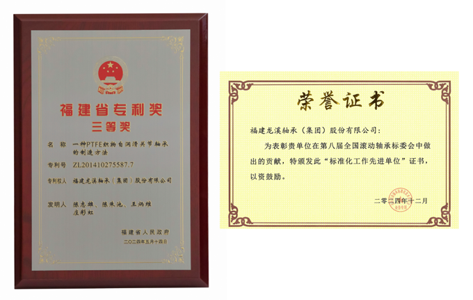 公司前瞻布局未來產業知識產權,申請專利23項,全年獲授權專利16項,其中發明專利13項,數量創歷史新高,《一種PTFE織物自潤滑關節軸承的制造方法》榮獲福建省專利獎三等獎。同時公司積極履行全國滾動軸承標準化技術委員會關節軸承分技術委員會秘書處單位職責,主導制修訂ISO、國家、行業關節軸承標準20余項,從63家委員單位中脫穎而出,榮獲第八屆全國滾動軸承標委會“標準化工作先進單位”稱號。