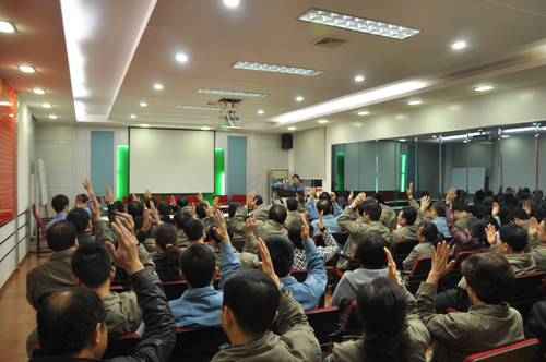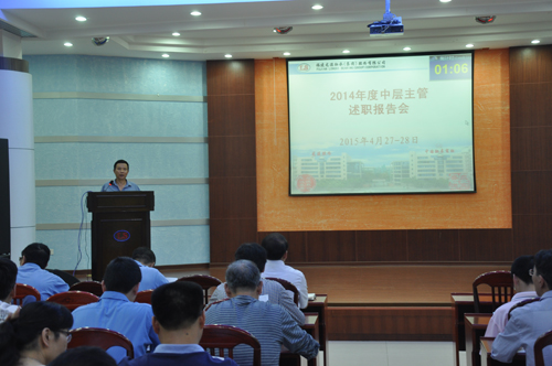 2015年4月27日至28日晚上,公司舉行2014年度中層主管述職報告及中層互評會議。公司高管及公司的92名中層主管參加了會議。此次述職報告44名中層主管代表本部門、車間作2014年—2015年上半年工作總結(jié)匯報。之后,公司高管及中層主管分別填寫《2014年度中層主管考核評價表》,開展中層主管評價及互評工作。