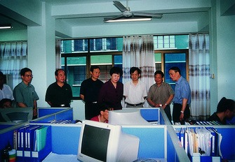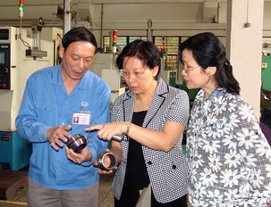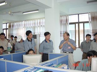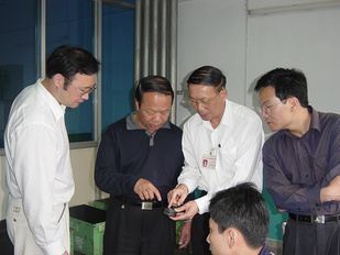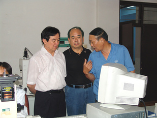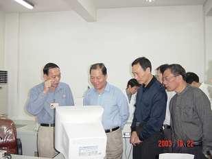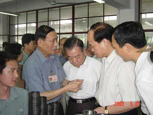 2003年10月22日,鄭松巖(時任福建省經貿委主任,左二)視察龍軸
