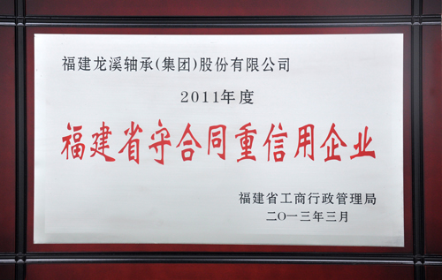 近日,公司在福建省工商局2011年度福建省守合同重信用企業(yè)創(chuàng)建活動中獲得“福建省守合同重信用企業(yè)”榮譽(yù)稱號?! ?/FONT>