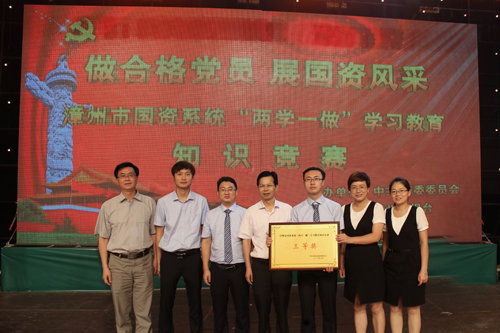 2016年6月13日15時(shí),隨著漳州電視臺(tái)主持人曉書、趙遠(yuǎn)一聲“令”下,一場(chǎng)由漳州市國(guó)資委黨委主辦的 “兩學(xué)一做”學(xué)習(xí)教育知識(shí)競(jìng)賽在漳州市電視臺(tái)演播大廳拉開了序幕。經(jīng)過一番激烈的智力拼奪,公司代表隊(duì)取得了三等獎(jiǎng)的喜人成績(jī)。