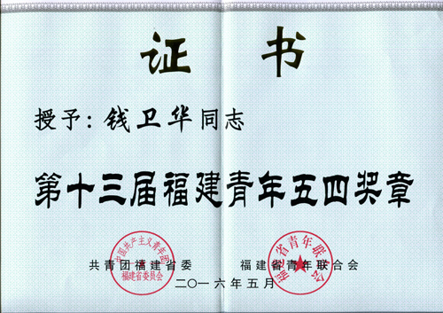 據(jù)悉,“福建青年五四獎(jiǎng)?wù)隆笔枪睬鄨F(tuán)福建省委、福建省青年聯(lián)合會(huì)授予福建省青年集體和個(gè)人的最高榮譽(yù),其評(píng)選旨在集中展示廣大青年在推動(dòng)福建科學(xué)發(fā)展跨越發(fā)展中的積極作為,進(jìn)一步在廣大青年中形成崇尚先進(jìn)、學(xué)習(xí)先進(jìn)、爭(zhēng)做優(yōu)秀人才的風(fēng)氣。