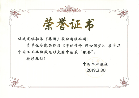2019年3月31日,由中國工業報社主辦的首屆中國工業品牌微電影大賽頒獎典禮在山東泰安舉行。本次大賽以“創新融媒 共贏”為主題,對刻畫宣傳近年來工業戰線的優秀品牌、產品、技術、模范人物等內容的作品進行評選,將我國優秀的工業文化推廣出去,促進培育新的具有中國特色的工業精神,樹立工業發展新理念,提高全民族工業文化素養。