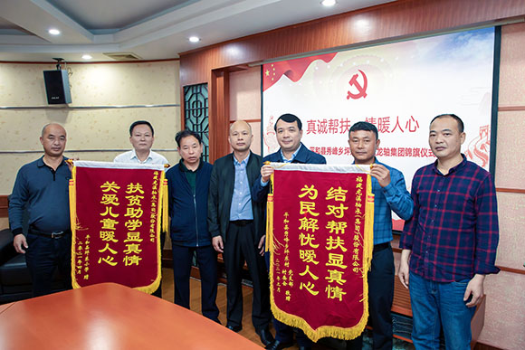 2021年4月19日,漳州市平和縣秀峰鄉(xiāng)坪東村村支書、村長及坪東小學校長一行到公司贈送錦旗,感謝公司三年多來對他們的幫扶。公司黨委書記、董事長陳晉輝,黨委副書記劉明福熱情接待坪東村一行。