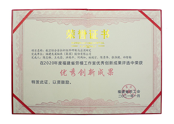 近日,福建省總工會發(fā)布了《關于命名“福建省(示范性)勞模工作室”和發(fā)布福建省勞模工作室優(yōu)秀創(chuàng)新成果的通知》,我司陳志雄勞模工作室被命名為“福建省示范性勞模工作室”,由陳志雄帶領團隊完成的“航空鋁合金拉桿組件研制與應用研究”項目被授予“福建省勞模工作室優(yōu)秀創(chuàng)新成果”榮譽稱號。(宣傳部吳志聰撰稿)
