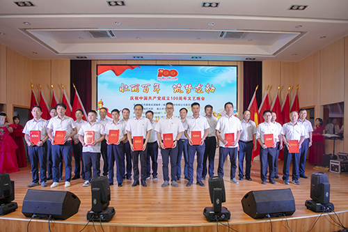 為熱烈慶祝中國共產(chǎn)黨成立100周年,謳歌黨的豐功偉績和偉大成就,展現(xiàn)在黨的領導下龍軸自強不息、闊步前行的精神風貌,2021年6月29日晚,由公司黨委主辦、龍軸藝術團及春之聲藝術團協(xié)辦的“壯麗百年 筑夢龍軸”慶祝中國共產(chǎn)黨成立100周年文藝晚會在藍田三廠區(qū)龍軸集團大禮堂隆重舉行。漳州市政府辦副主任吳維桑、漳州市國資委黨委委員、二級調(diào)研員盧宗金、九龍江集團黨委副書記魏育健等嘉賓,公司黨委書記、董事長陳晉輝及領導班子其他成員出席晚會,黨總支、黨支部負責人,中層干部、業(yè)務主管及“兩先一優(yōu)”代表等參加。