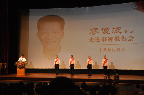 ????2017年7月6日下午,公司黨委組織人員參加在市人民劇場(chǎng)舉行的廖俊波同志先進(jìn)事跡報(bào)告會(huì)。會(huì)上,南平市委常委、組織部部長(zhǎng)羅志堅(jiān)、政和縣人大常委會(huì)主任鄭滿生、政和縣石屯鎮(zhèn)松源村支書袁云機(jī)、閩北日?qǐng)?bào)記者黃旭輝先后作了題為《牢記使命 不負(fù)黨恩》、《向夢(mèng)想前進(jìn)》、《廖書記,我們想你》和《遺憾與無憾》的報(bào)告。廖俊波同志的妻子林莉則以視頻播放的形式作了題為《一諾無悔》的報(bào)告。