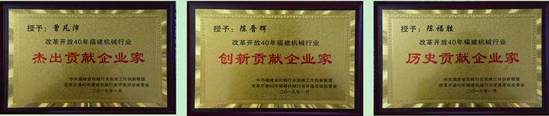 2019年1月30日,改革開放40年福建機械行業(yè)杰出貢獻企業(yè)家表彰大會在福州隆重召開。公司黨委書記、董事長曾凡沛獲改革開放40年福建機械行業(yè)杰出貢獻企業(yè)家殊榮;公司黨委副書記、總經(jīng)理陳晉輝獲改革開放40年福建機械行業(yè)創(chuàng)新貢獻企業(yè)家殊榮;原公司黨委書記、董事長陳福勝獲改革開放40年福建機械行業(yè)歷史貢獻企業(yè)家殊榮。
