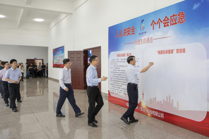 啟動儀式開始前,首先舉行“暢通生命通道”倡議書簽名活動,集團領導班子成員帶頭在“暢通生命通道”簽名墻上簽名,共計約200名與會人員參加簽名活動。