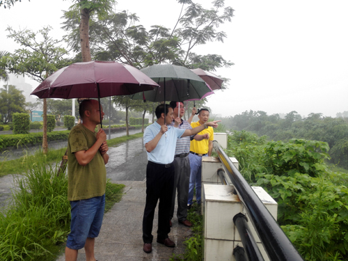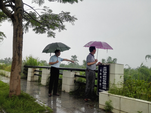 ????2017年6月3日上午,大雨如注。公司總經(jīng)理陳晉輝、副總經(jīng)理康安偉率領(lǐng)防汛抗洪搶險巡邏隊部分成員前往公司防洪防汛責(zé)任堤段——西溪康山土堤(起止樁號0+750~2+250)進(jìn)行防汛安全巡查。